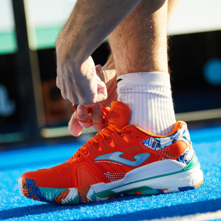 Scarpe specifiche da padel da uomo. Destinate all'uso professionale in allenamento ad alta frequenza e competizione e ideali per giocatori di padel di peso medio-alto. Si tratta delle scarpe da padel Joma più complete, che combinano stabilità, reattività e ammortizzazione.